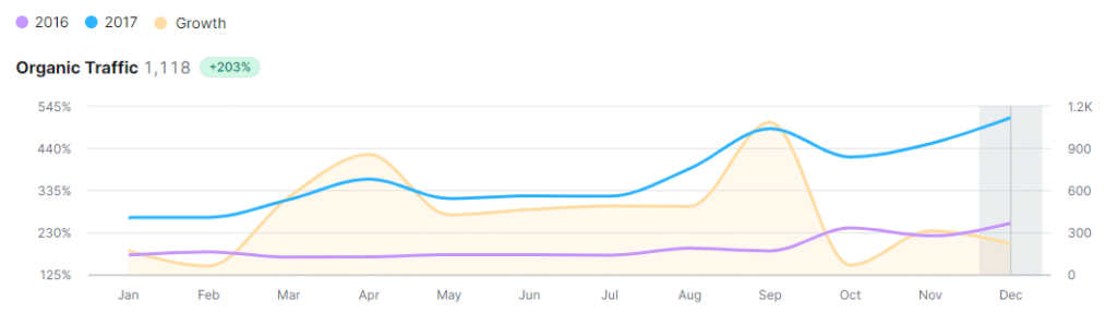 203% increase in Organic traffic Year over Year