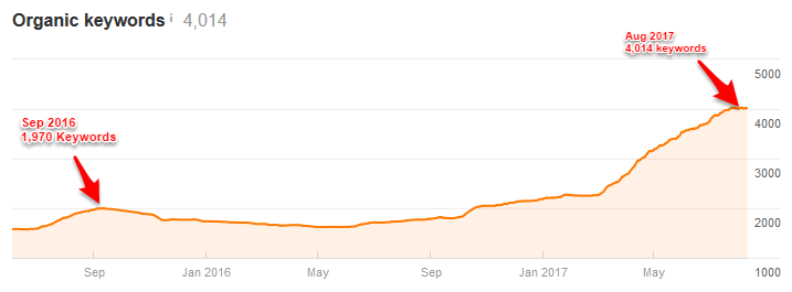 By setting up an elaborate content building for landing pages and continuing to feed Google with helpful and informational content, the growth in coveted Organic keywords and improvements in existing keyword positions brought on an amazing trajectory to the client’s website traffic.